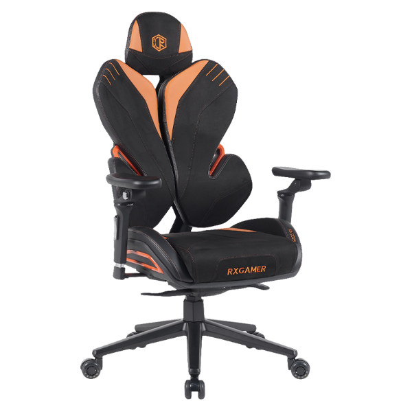 の RXゲーマー RX-K6-6201 快適さと弾力性のバランスをとる生地の組み合わせが組み込まれています。デザインには、黒のスエード ベルベット、黒の 4 方向ストレッチ素材、アンバー オレンジの生地が含まれています。この組み合わせにより、現代のゲーム設定に適した洗練された外観を維持しながら、座面が体の動きに適応することが可能になります。